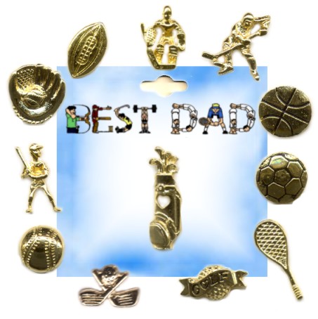 Assorted sports related Dad lapel / hat pin assortment in gold plate. Shipped in 1 dozen pack on 2.5 inch “BEST DAD” rack cards. Great Father’s Day gifts. (Price: $1.05 each). MADE IN USA