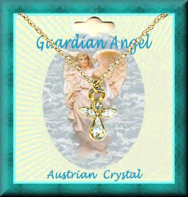 4 Austrian clear Crystal stones are set in a gold plated Angel on an 18″ gold-plated neck chain. Each Angel measures 1/2 x 3/4 inch. Shipped on 2.5 inch Angel rack cards in 1 dozen pack. (Price: $2.25 each) {See #10761 for Birthstone version}. MADE IN USA