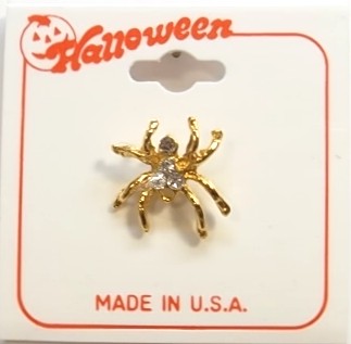 4 Austrian Crystal stones are set in these gold plated spider lapel or hat pins. Spiders measure 5/8 x 3/4 inch. Shipped on 2 inch rack / hang cards in 1 dozen pack. (Price: $1.35 / Pair) MADE IN USA