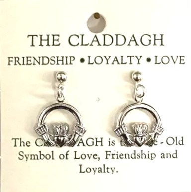 Irish Claddagh Dangle Pierced Earrings in Silver Plate