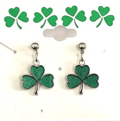 Irish Shamrock Dangle Earrings in Silver Plate