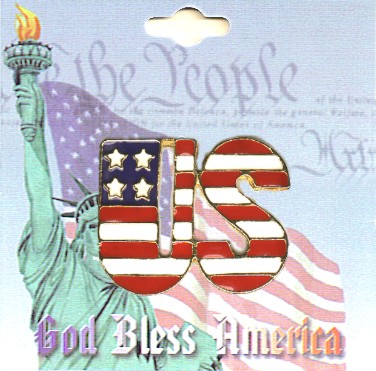 US script flag pin in gold plate & hand-painted epoxy. Each pin measures: 1.25 x 1 inch, shipped on 2.5 inch Patriotic rack card, with 12 pins to dozen pack. (Price: $2.00 each) PROUDLY MADE IN USA
