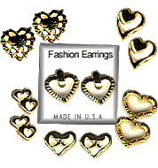 U-120 Gold Plated Valentine Earrings 36 pair display 6 assorted styles 1-5 Displays: $15.00 per 36 pair 6-24 Displays: $12.50 per 36 pair