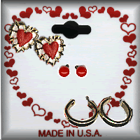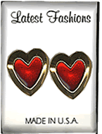 U-464 Gold with Red Epoxy Valentine Earrings 6 assorted styles 36 pair display 1-5 Displays: $18.00 per 36 pair 6-24 Displays: $15.00 per 36 pair