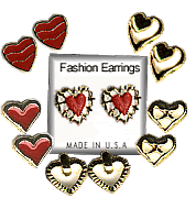 U-197 Gold-Pink-Red Valentine Earrings 6 assorted styles 36 pair display 1-5 Displays: $18.00 per 36 pair 6-24 Displays: $15.00 per 36 pair